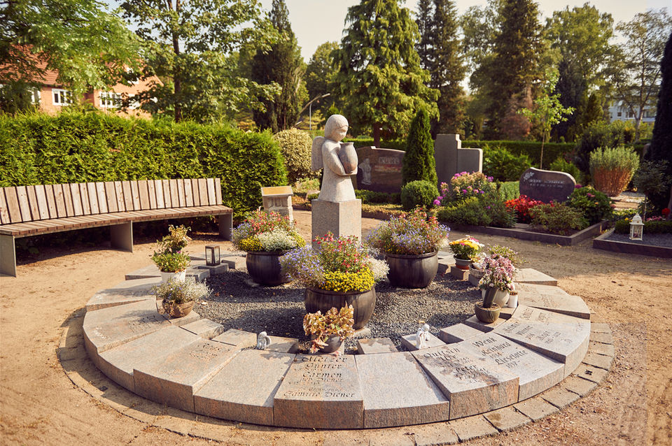 Rundherum sind Parkbänke zum stillen Gedenken an die Verstorbenen aufgestellt. Ansonsten wird die Bepflanzung und Pflege der Anlage rund um die mittige Märchenskulptur vom Friedhof je nach aktueller Jahreszeit geregelt. Sie müssen sich also um nichts weiter kümmern.